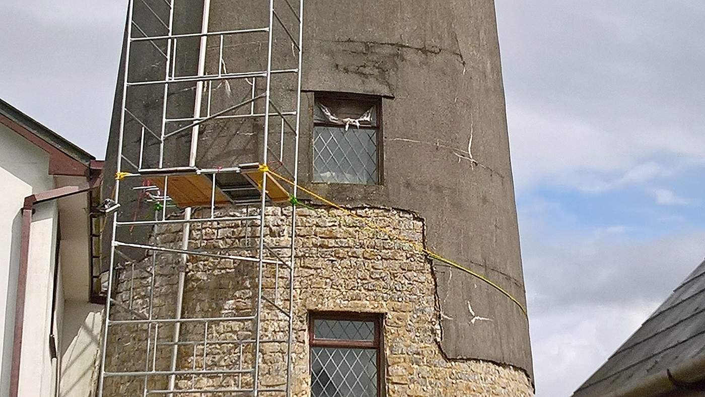 Here is an 18 metre tall 200 year-old listed wind mill, close to the sea. Wind driven rain created major problems, resulting in ongoing water leaks. The building has been sympathetically waterproofed and thermally insulated with lime plasters only, using breathable heritage-friendly materials only.