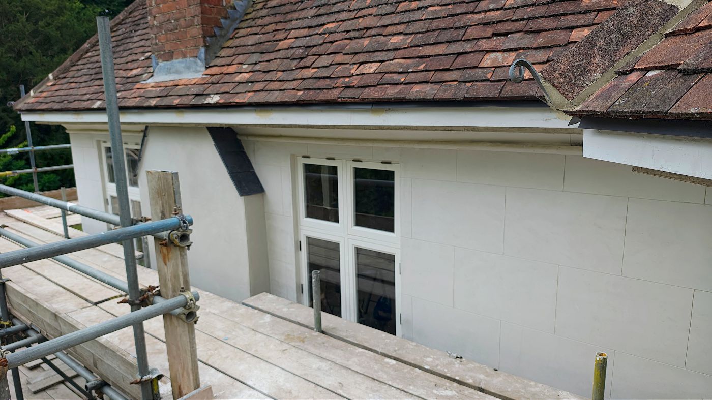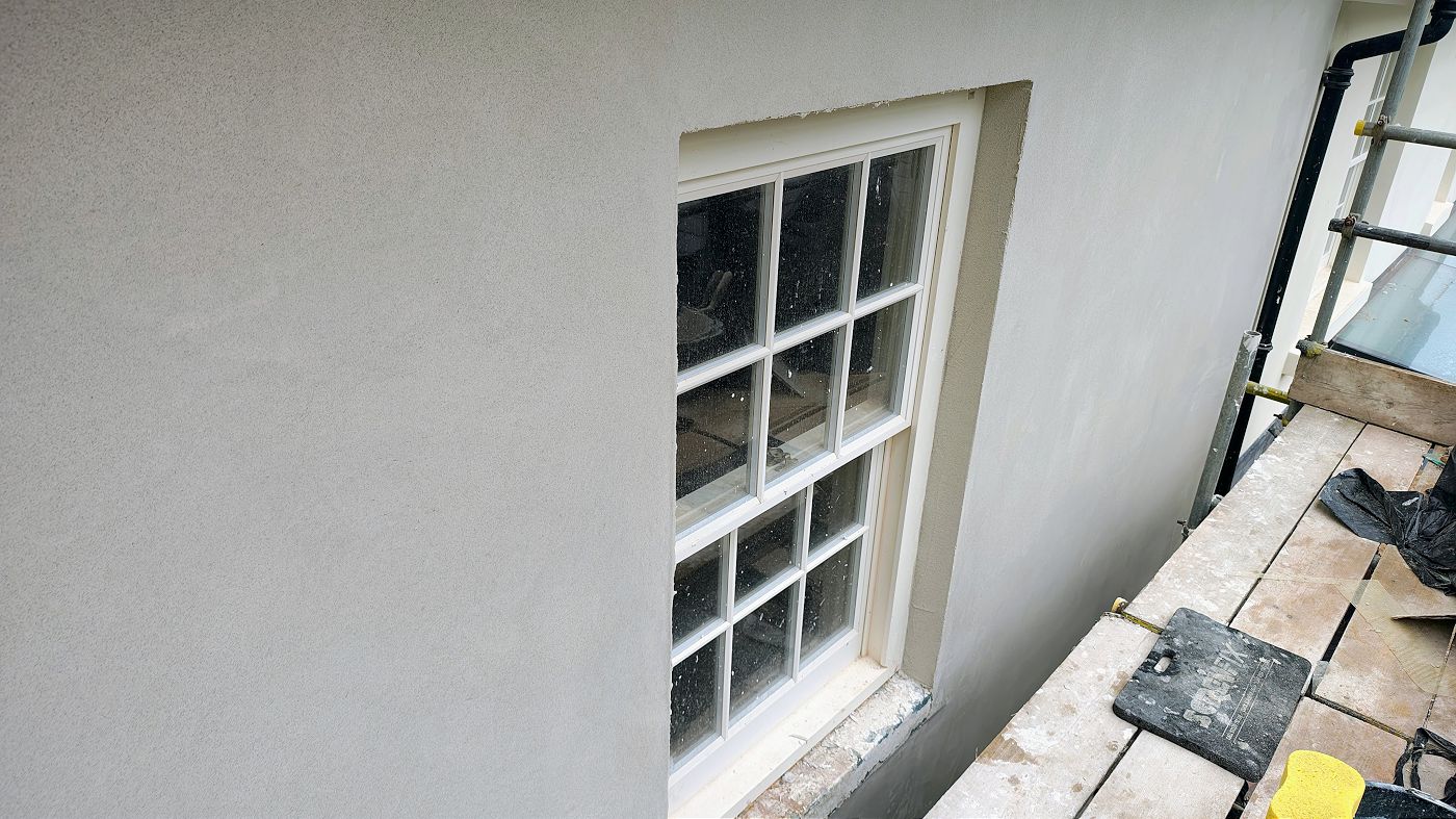 The external render system was built using a fully breathable, mineral-based approach, with each layer performing a specific function: