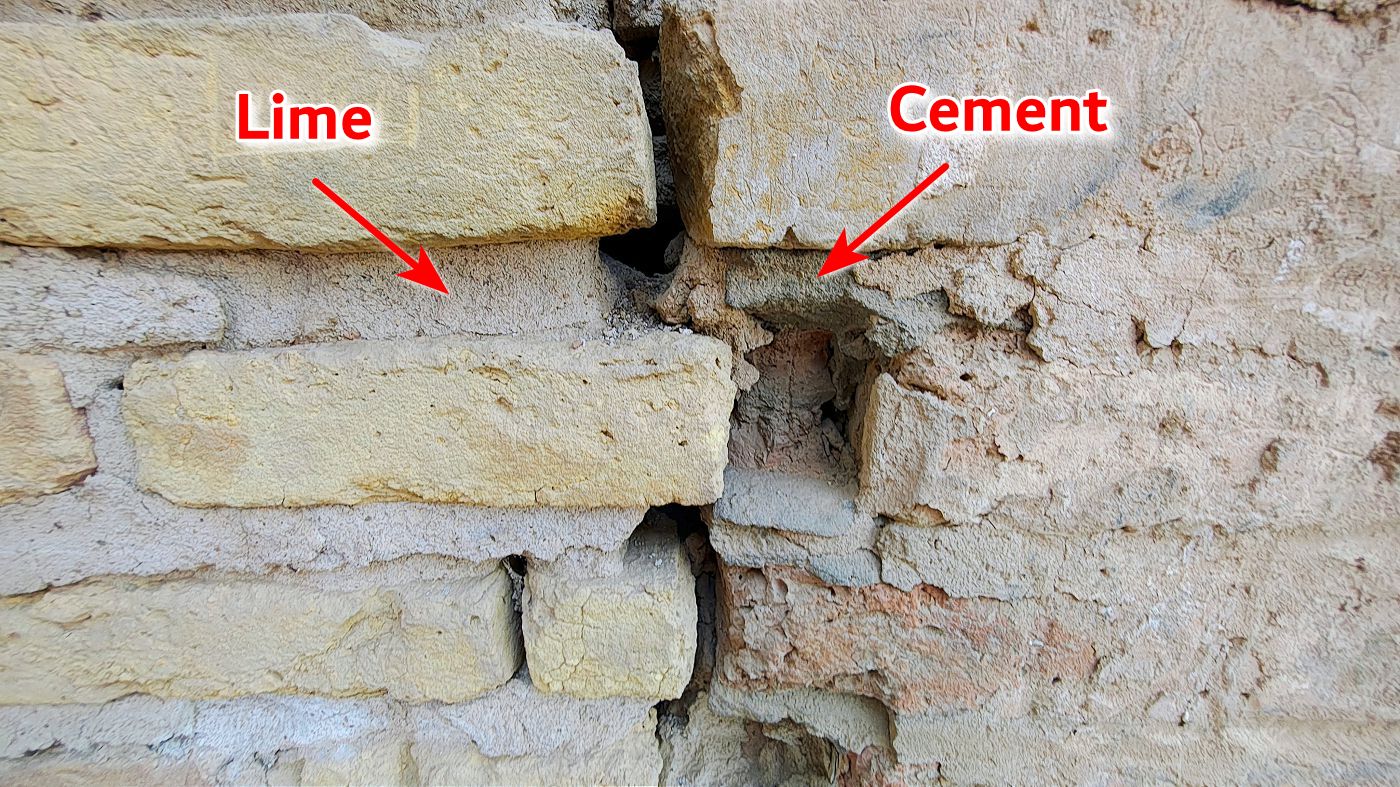 The bond is gentle – about 40% of the brick’s strength. Under stress, the lime lets go first; the brick stays intact. However, this softness means it does not reinforce a friable wall; loose grains remain loose.